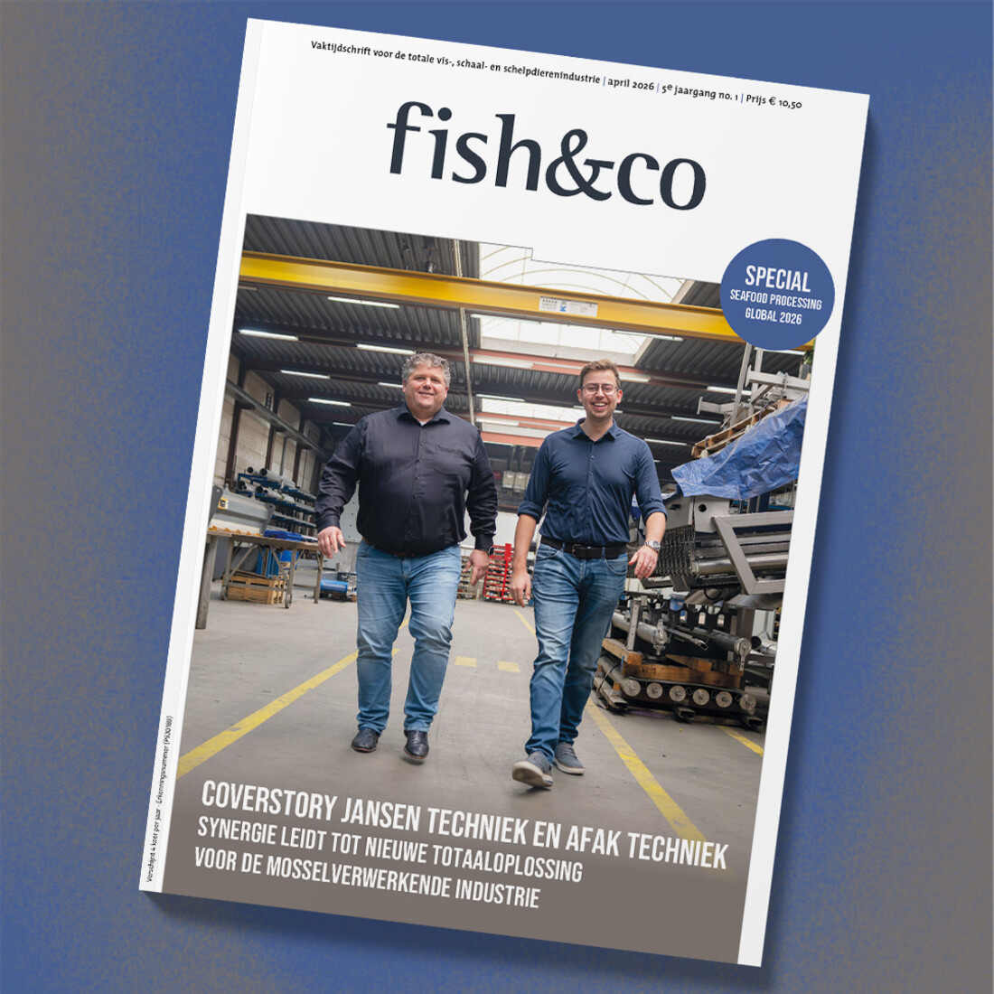 Deze week verschijnt een nieuwe uitgave van vaktijdschrift Fish&Co, met daarin uitgebreide aandacht voor Seafood Processing Global. De coverstory komt voor rekening van Jansen Techniek en Alfa Techniek, die een totaaloplossing hebben ontwikkeld waarmee de verwerking van mosselen en schelpdieren verder kan worden geautomatiseerd. Ook leest u een groot interview met Ingmar Baars (IB Food-Machines) en reportages bij Alfa Fish en Diepvries Urk.