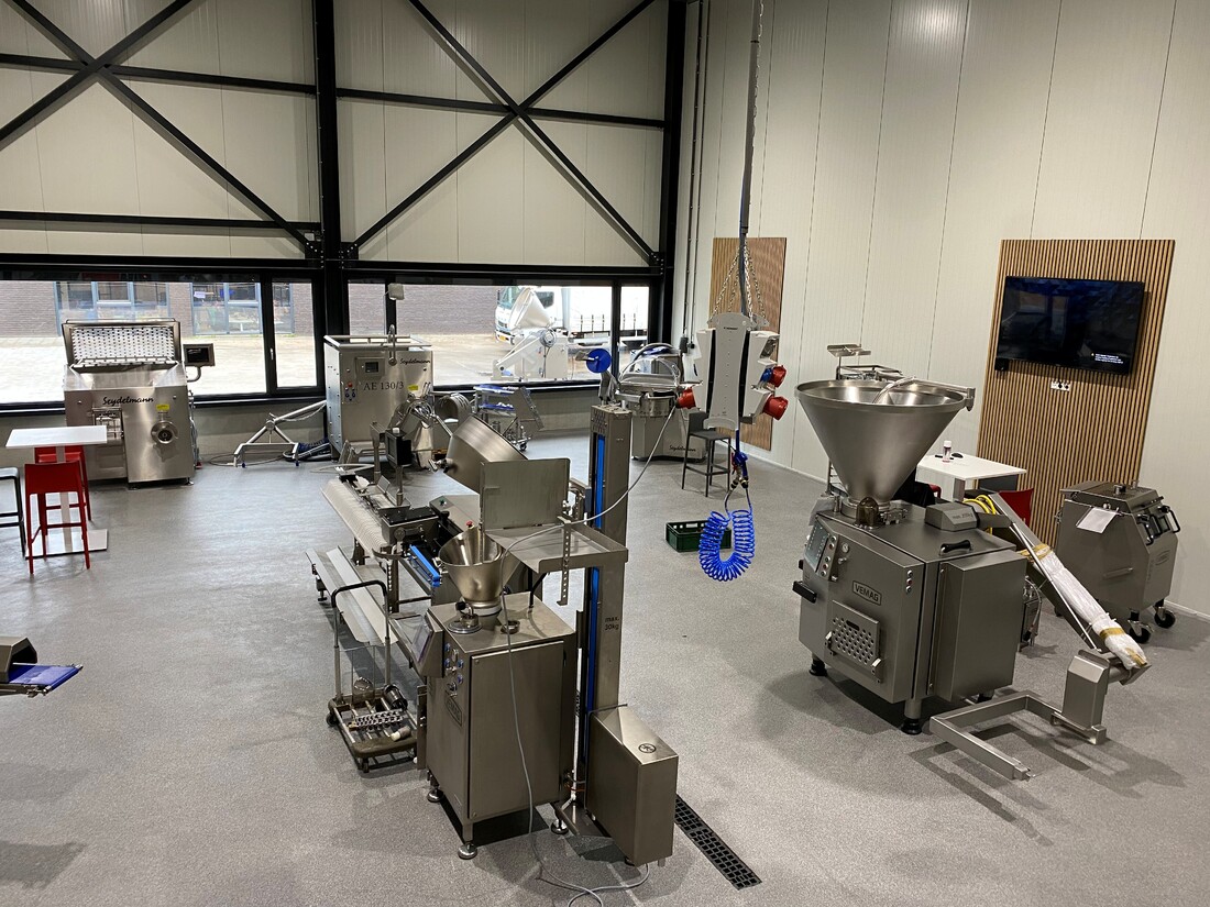 Van Roekel: “Onlangs hadden we een slagersgilde op bezoek, die met hun receptuur een bepaalde worst wilde gaan maken. Als er dan drie dagen later een industriële bakkerij wil komen testen, dan richten we de boel gewoon anders in, met productiemachines die aansluiten bij hun wensen en eisen. Die flexibiliteit hadden we in het verleden nog niet, maar nú wel. Voorheen moesten we voor grote tests vaak uitwijken naar Vemag of Seydelmann in Duitsland. Dankzij ons nieuwe hoofdkantoor kunnen potentiële klanten gewoon in Oss terecht om test-runs te draaien, met hun receptuur, op onze machines. Ook hebben we hier een mooie trainingsfaciliteit om medewerkers van de technische diensten van onze klanten een training te geven.”